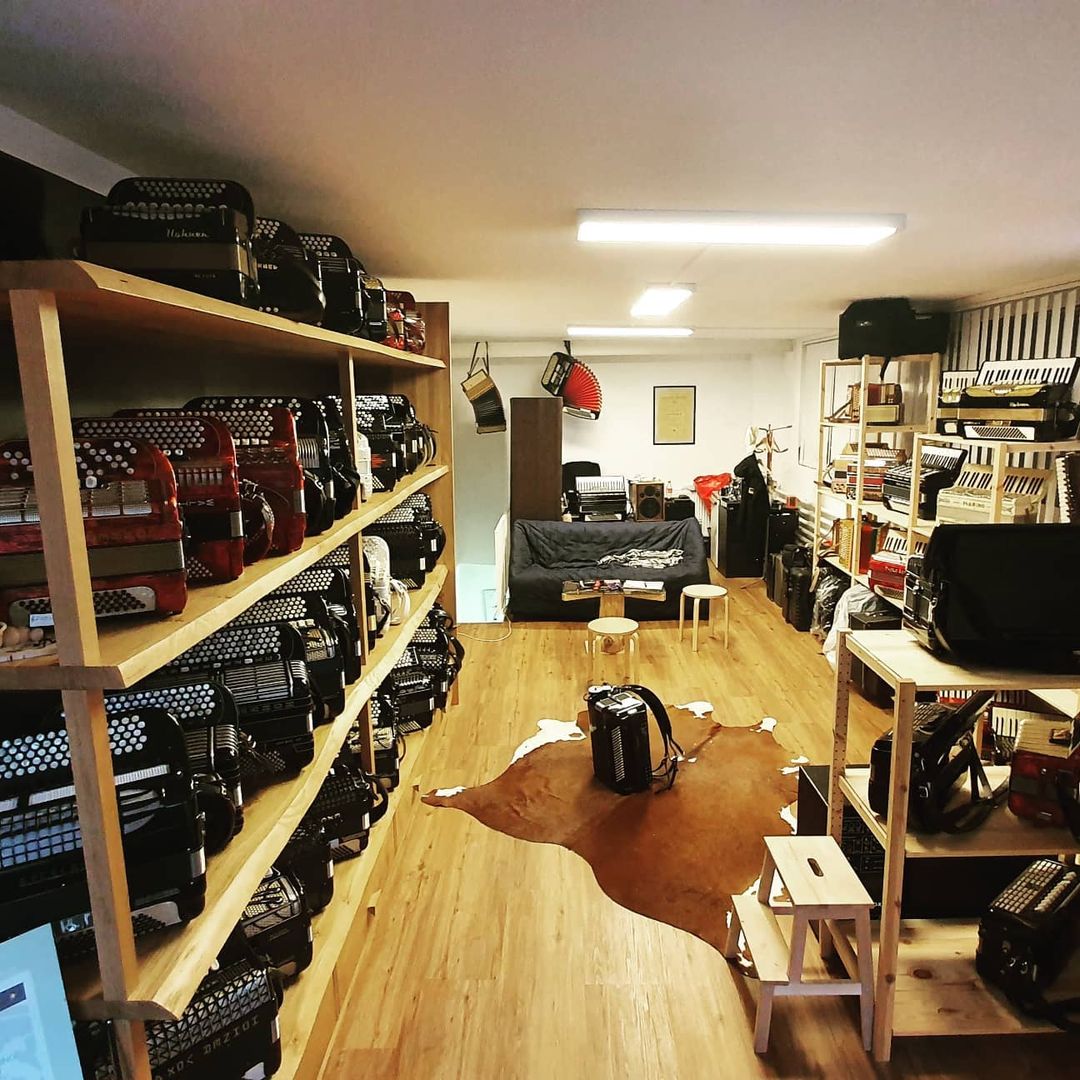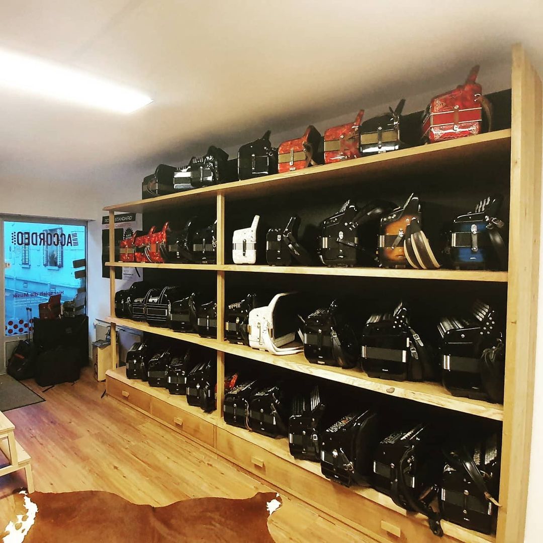 Im Geschäft sind immer Akkordeons zum Verkauf vorrätig, etwa von der Marke Royal Standard.