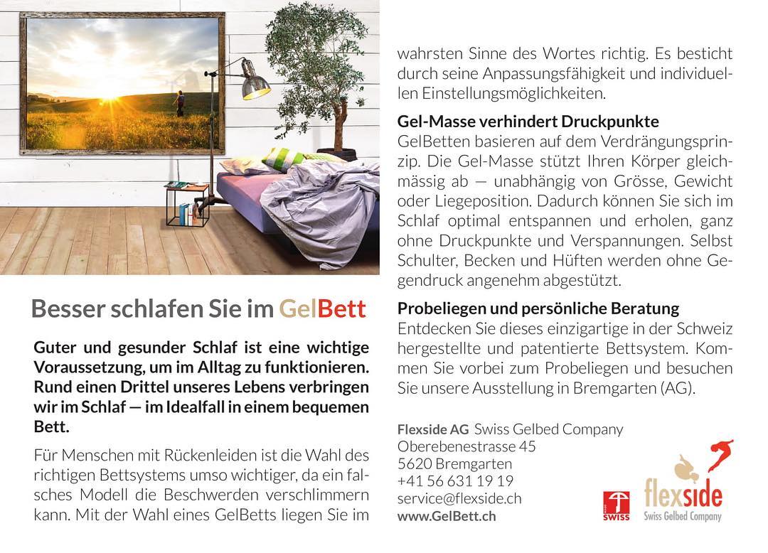 Flexside AG: Ohne Rückenprobleme im GelBett schlafen
